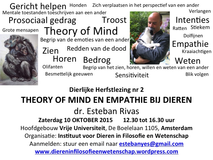 Dierlijke Winterlezing 2, zaterdag 13 februari 2016: Theory of Mind en empathie bij dieren.Winterlezing Theory of Mind en empathie 13 februari 2016