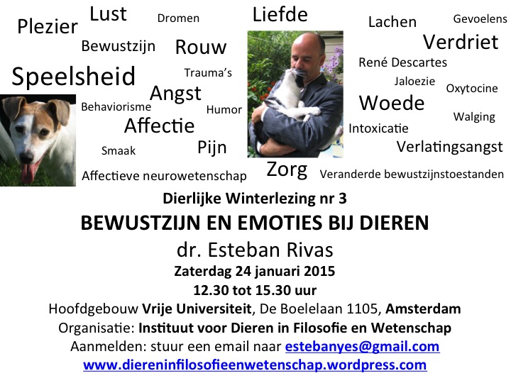 Dierlijke Winterlezing 3, zaterdag 20 februari 2016: Bewustzijn en emoties bij dieren.Winterlezing Bewustzijn Emoties bij dieren 20 februari 2016