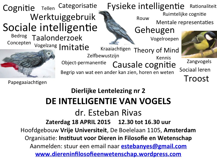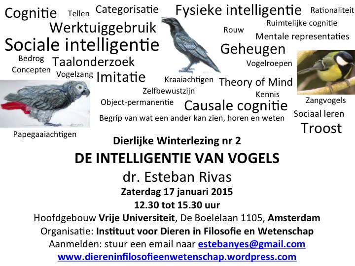 Dierlijke Winterlezing 1, zaterdag 30 januari 2016: De intelligentie van vogelsWinterlezing intelligentie vogels 30 januari