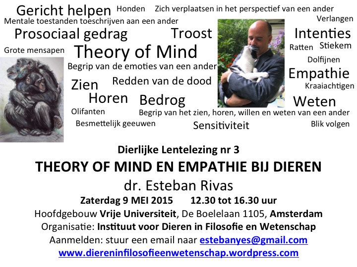 Dierlijke Lentelezing 3, zaterdag 9 mei 2015: Theory of Mind en empathie bij dieren.